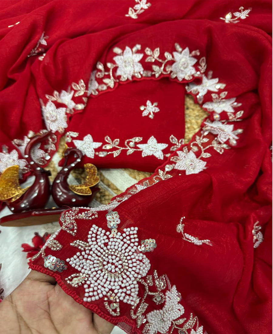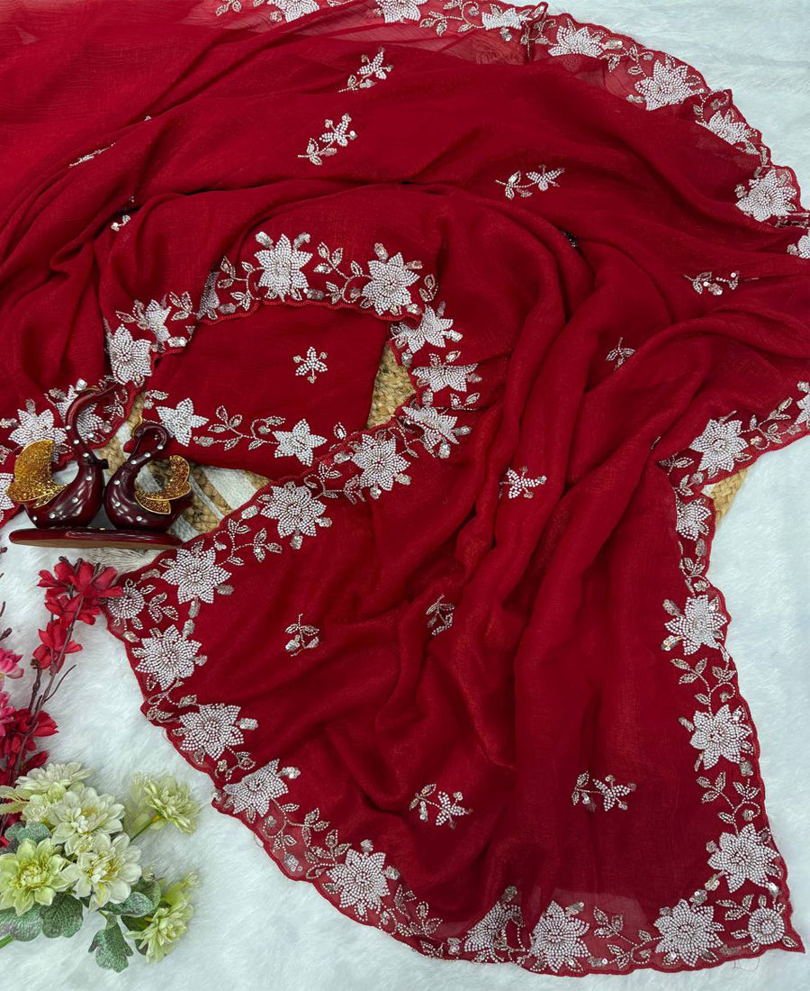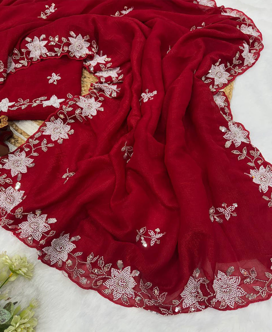 Saree : Pixel Crush Beautiful Katdana, Pearls And Sequins Work