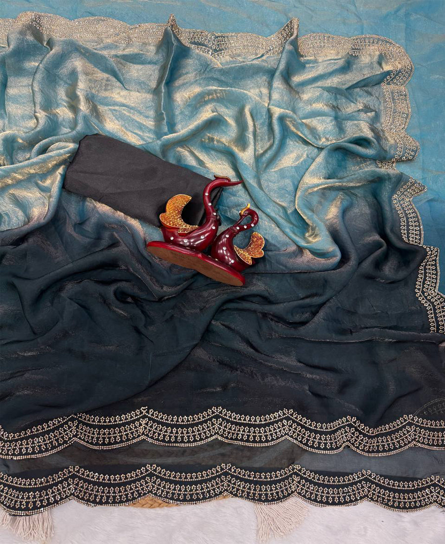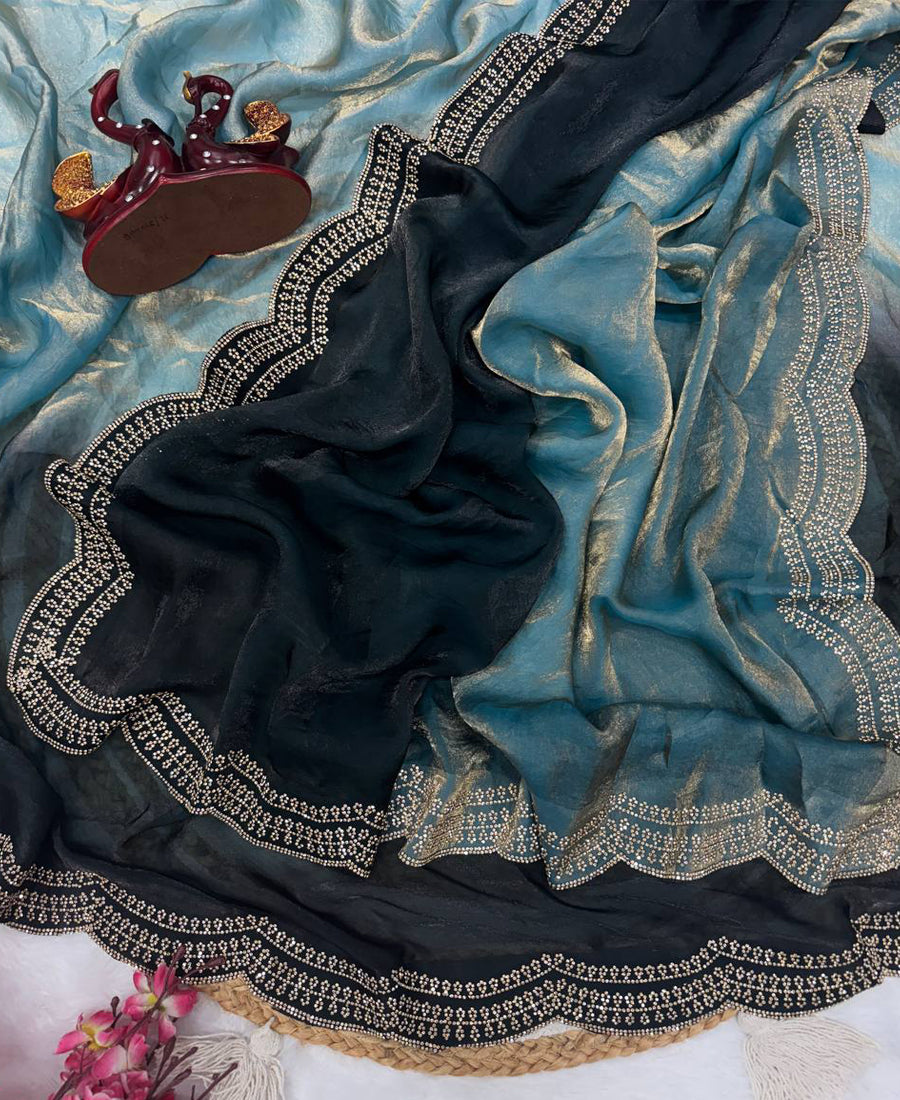 Satin Silk Shaded Diamond Jarkhan Work Saree