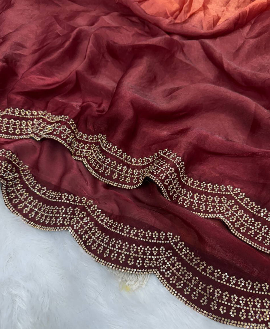 Satin Silk Shaded Diamond Jarkhan Work Saree